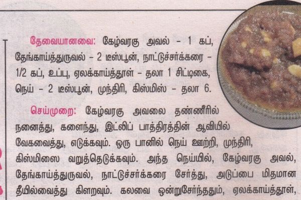 கேழ்வரகு அவல் கேசரிதேவையானவை:- கேழ்வரகு அவல் – 1 கப், தேங்காய்த் துருவல் – 2 டீஸ்பூன்,...