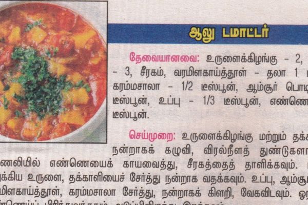 ஆலு டமாட்டர்.தேவையானவை:- உருளைக்கிழங்கு – 2, தக்காளி – 3, ஜீரகம் - 1 டீஸ்பூன், வரமிளகாய்த...