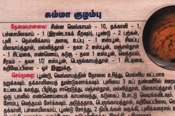 சும்மா குழம்புதேவையானவை:- சின்ன வெங்காயம் - 10, தக்காளி - 1, பச்சை மிளகாய் - 1 இரண்டாக வகிī...