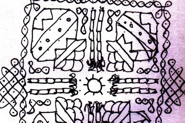 பொங்கல் கோலம் நேர்ப்புள்ளி 24 - 2 வரிசை, 22, 20, 18 - 6 வரிசை, 6,4,2.