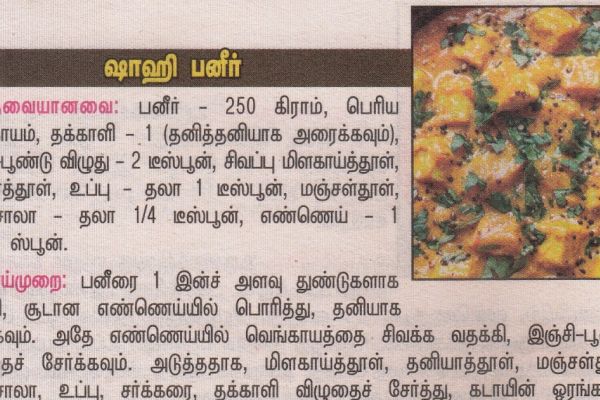 ஷாஹி பனீர்தேவையானவை:- பனீர் - 250 கிராம், பெரிய வெங்காயம் (அரைத்தது) – 1, பெரிய தக்காளி (அரை&...