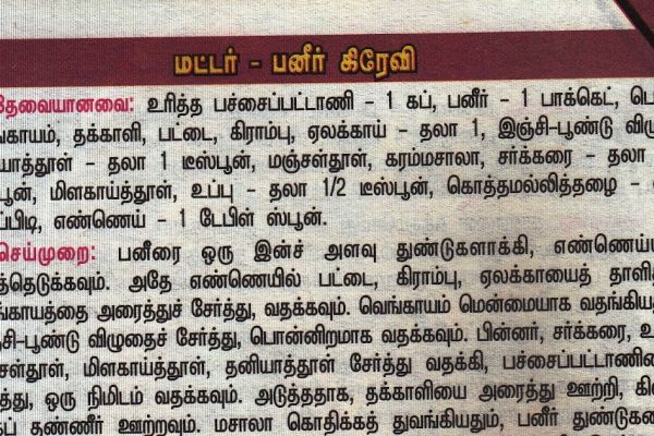 மட்டர் (பட்டாணி) பனீர் க்ரேவிதேவையானவை :- பச்சைப் பட்டாணி – ஒரு கப் ( உரித்தது ), பனீர் &ndas...