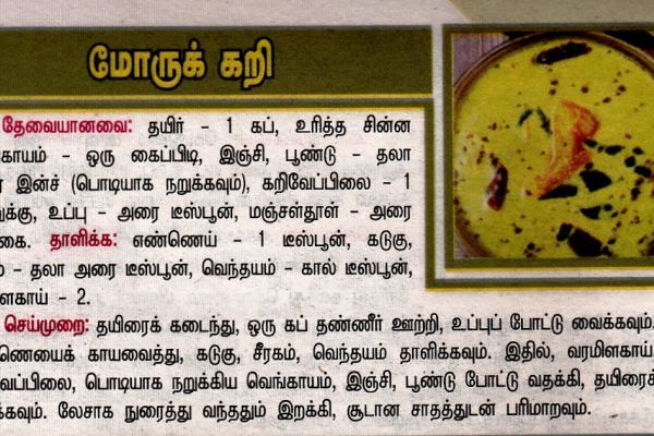 18.மோரு கறிதேவையானவை:- தயிர் – 1 கப், சின்ன வெங்காயம் – அரிந்தது ஒருகைப்பிடி, இஞ்சி, பூணĮ...
