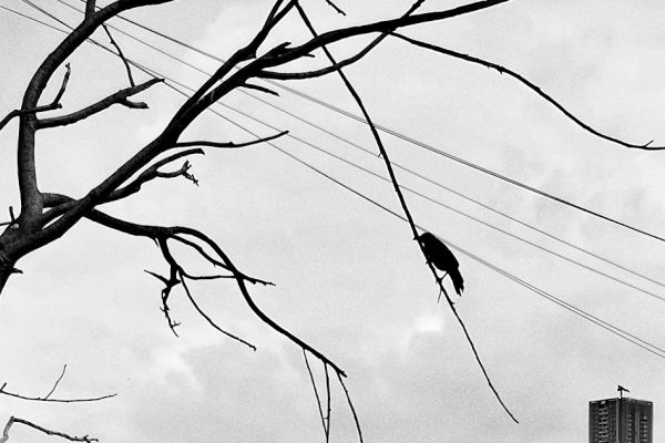 A black bird on a bare branch over a drying creek in Mahim bay.Linking to Black and White Weekend ...