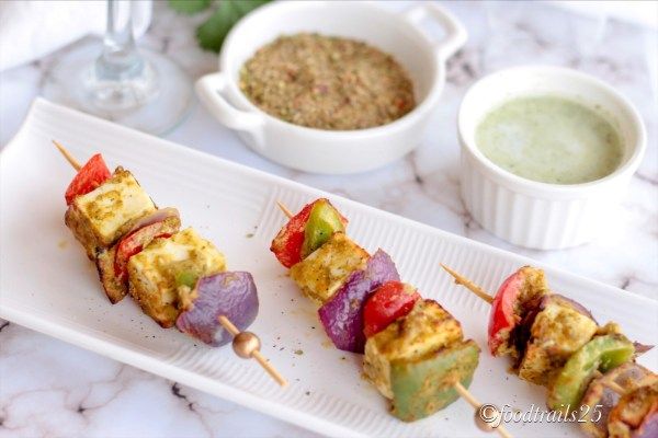 Swati food-trails Paneer or Indian Cottage Cheese, Bell Peppers and Onions marinated fresh Basil Pesto and grilled. An Italian twist on our favourite Paneer Tikka. The post Basil Pesto Paneer Tikka appeared first on food-trails.