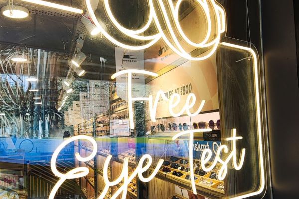 See the world clearer-free eye test awaits...Sign at Lenskart Store Location: Zoo Road, Guwahati, Assam, India