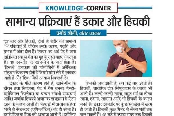 डकार और हिचकी दोनों शरीर की सामान्य प्रक्रियाएँ हैं, लेकिन इनके कारण, प्रकृति और प्रभाव में अंतर होता है।