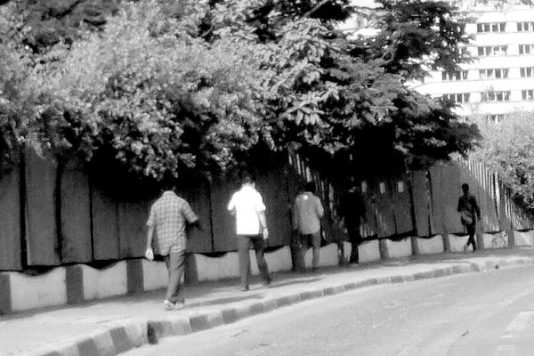 Disciplined pedestrians walking on the pavement provided. All marching to their thoughts!Linking to Black and White Weekend ...