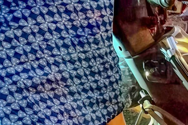 Riding into the sun with full protection from the heat and dust in Mumbai.