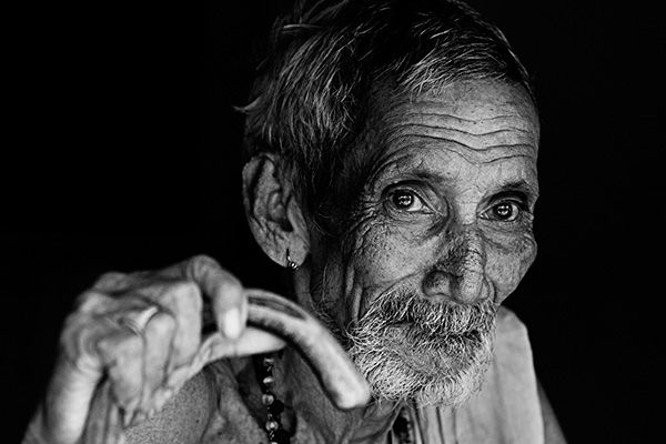 Old man holding a walking stick from Karnataka