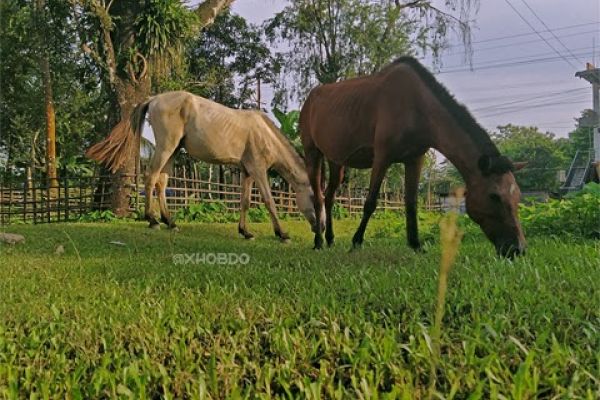 New visitors ... Horses grazing in front of our home Location: Abhayapuri, Bongaigaon, Assam, India
