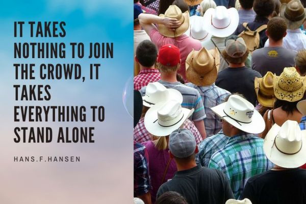 It takes nothing to join the crowd, it takes everything to stand alone Hans F Hansen Today’s’ inspiration is drawn from Hans F Hansen’s quote on being different. To be honest, I don’t know what clearly defines being different. But, I do know that each of our individual circumstances, choices and abilities are different. So, […] The post It takes nothing to join the crowd, but everything to stand alone! appeared first on Inspire 99.