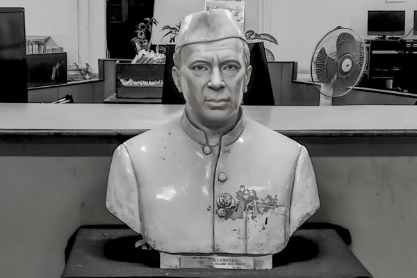 A bust of Jawaharlal Nehru greets you at the entrance of the library in the Mumbai University Kalina campus.Upon India