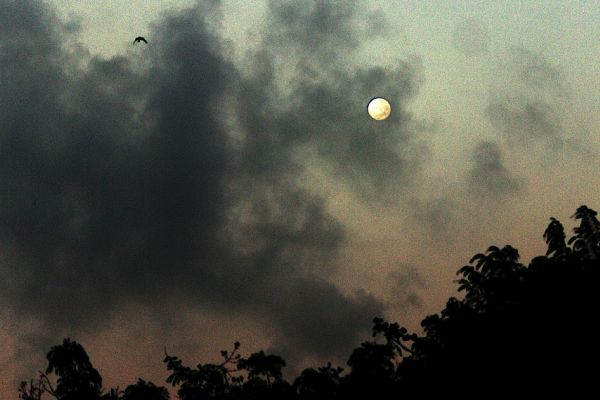 The moon, clouds, bird and a morning glow on the horizon in Bandra.Linking to  Skywatch Friday   ...