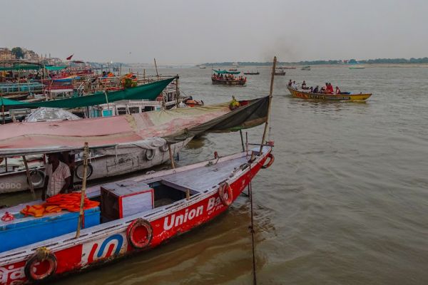 Morning Boat ride in river Ganga Location: Near Dashashwamedh Ghat, Varanasi, Uttar Pradesh, India, October, 2024