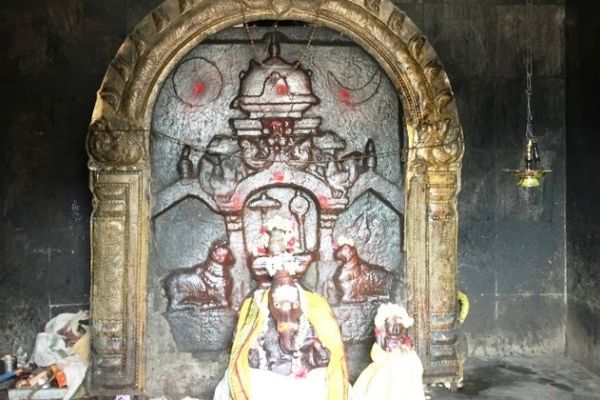 At the end of Kaveripattinam before Thenpennai river had seen a small Vinayagar temple, by the side of the road. On the back side of Vinayagar thiruvasi a relief panel was erected with a shiva Linga at the centre and two nandhis on both sides. Umbrella