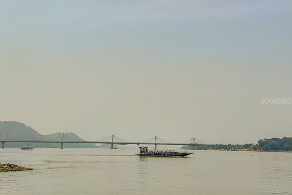 A lone boat carrying stories across the River Brahmaputra Location: Brahmaputra Riverside, Guwahati, Assam, India