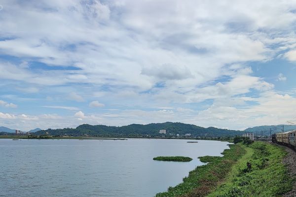 75723 NBQ-GHY DMU Train crossing Deepor Beel ( Lake) Photography location: Deepor Beel, Guwahati, Assam, India