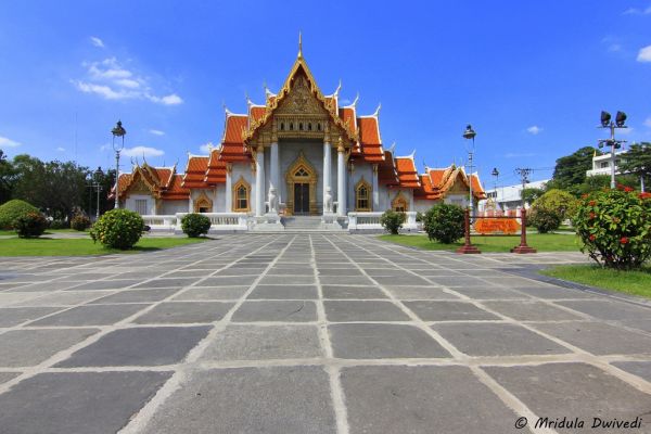 The Beautiful Marble Temple at Bangkok where I got the blessings of the Buddha and an elderly gentleman for clicking a few pictures!