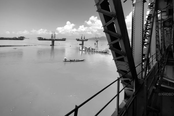 Clicked from 55804 GHY-NBQ Passenger train while crossing Naranarayan Setu ( bridge) over the Brahmaputra River. Construction of a new two-lane bridge ( Connects Jogighopa town in Bongaigaon District on the north with Pancharatna, a town in Goalpara District on the south) over Brahmaputra River. Location : Pancharatna, Goalapra, Assam, India