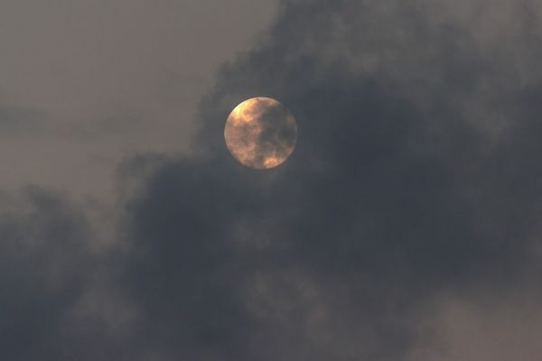 The moon hiding behind a flimsy veil of clouds in Bandra.Linking to Skywatch Friday ...