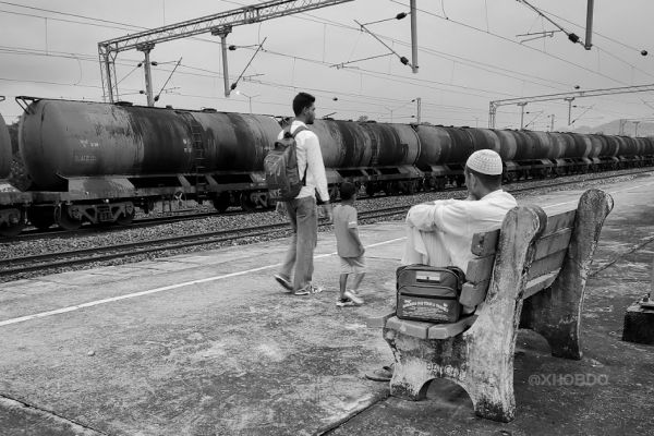 Passengers waiting for 75723 NBQ-GHY DMU passenger Train at Abhayapuri Railway Station in early morning. Photography Location : Abhayapuri (in Bongaigaon District), Assam